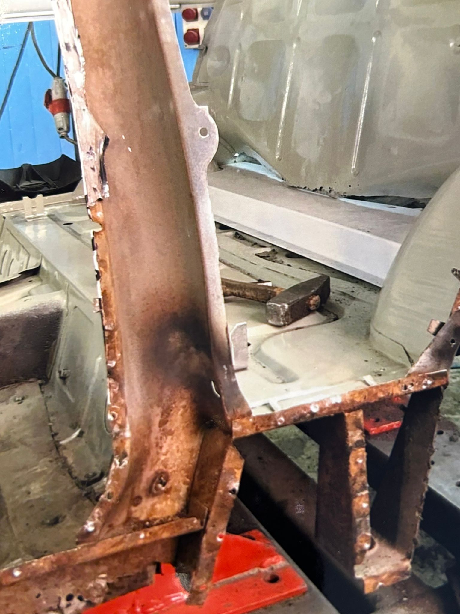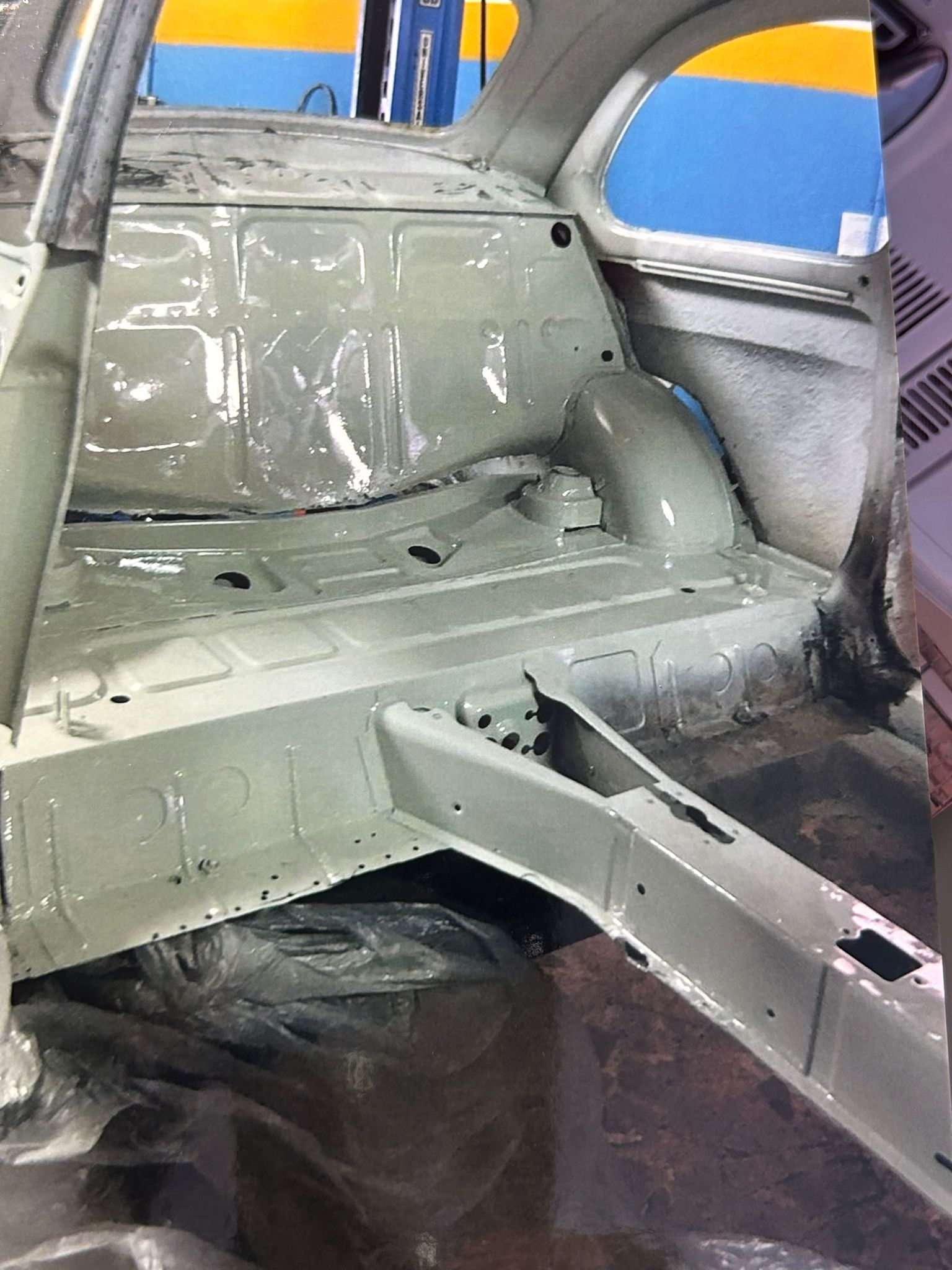La voiture a été entièrement restaurée tant au niveau de la carrosserie que de l’intérieur avec des techniques et des matériaux conformes.