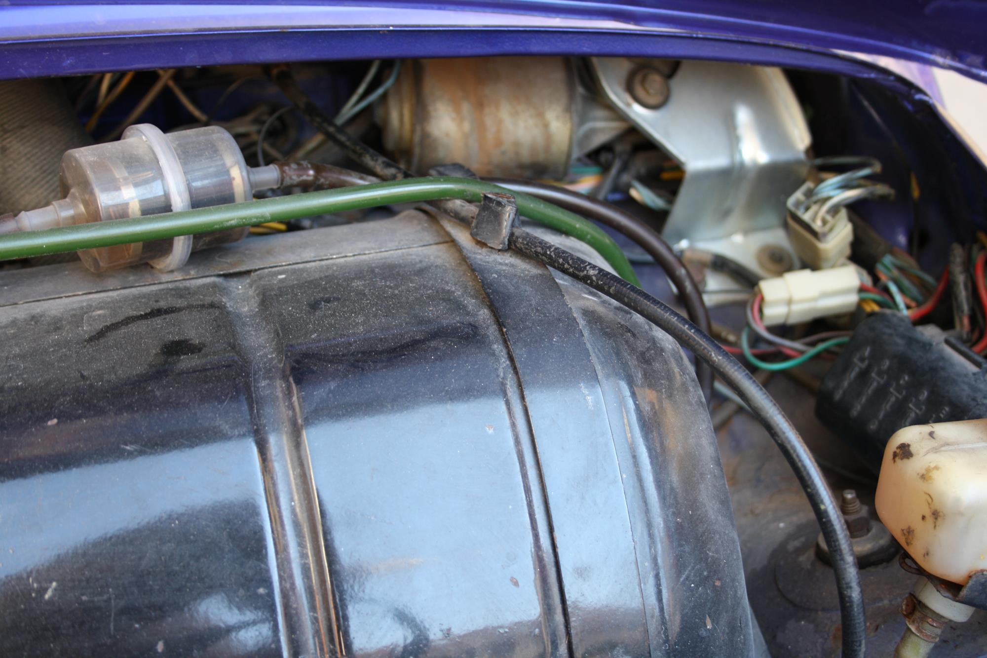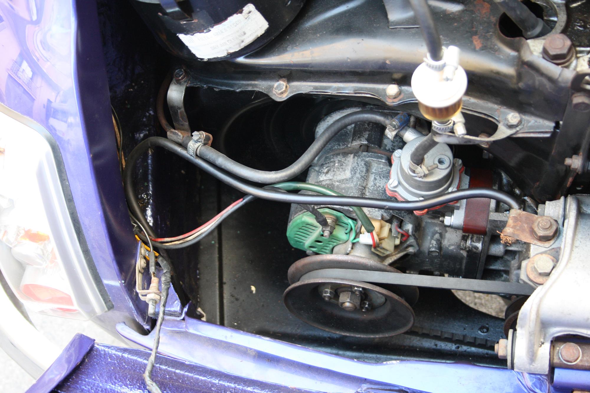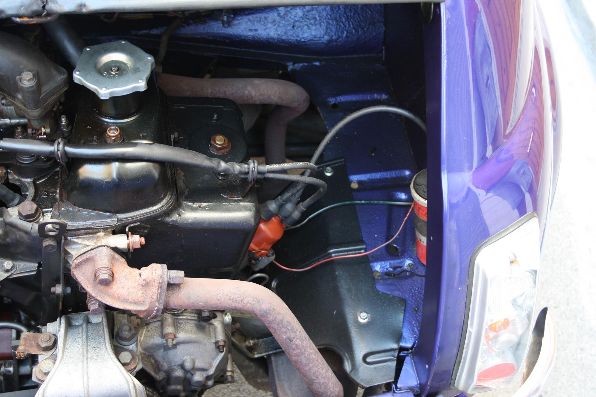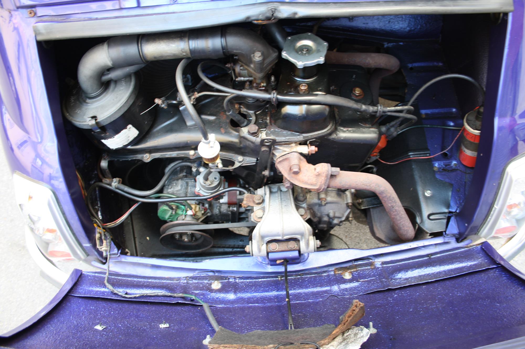 J’ai été emmené dans un atelier et ils ont commencé à travailler sur moi. Tant sur la carrosserie que sur le moteur. Ils ont décidé que ma nouvelle couleur serait violet métallique et que mon moteur 499cc devait être remplacé par un 650cc, issu d’une Fiat 126.