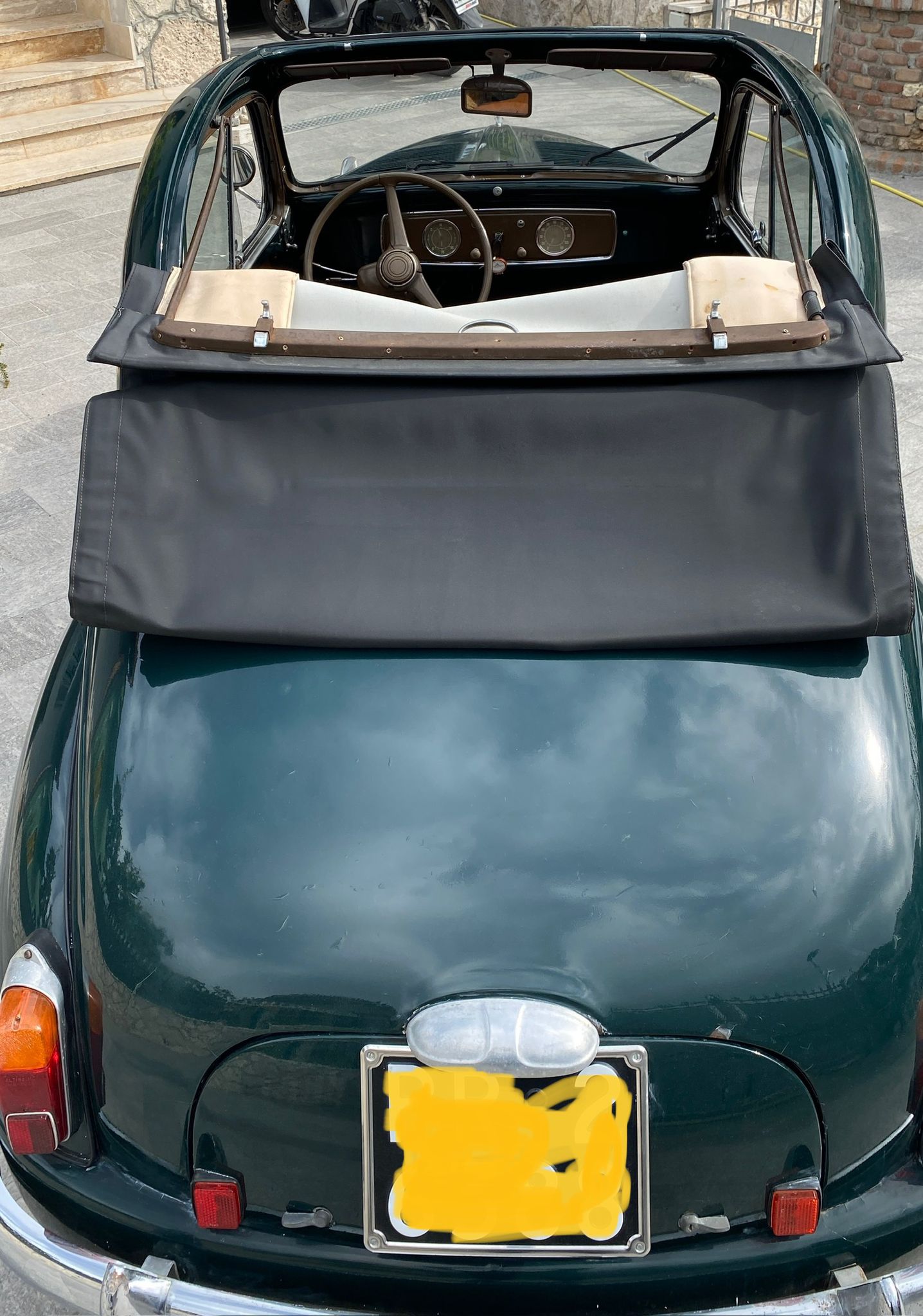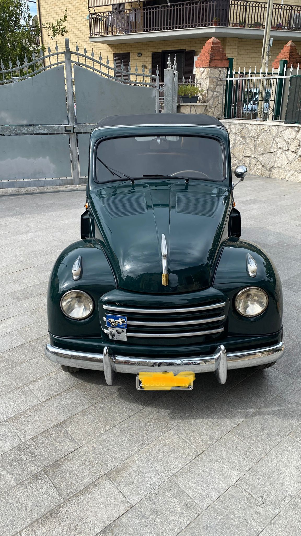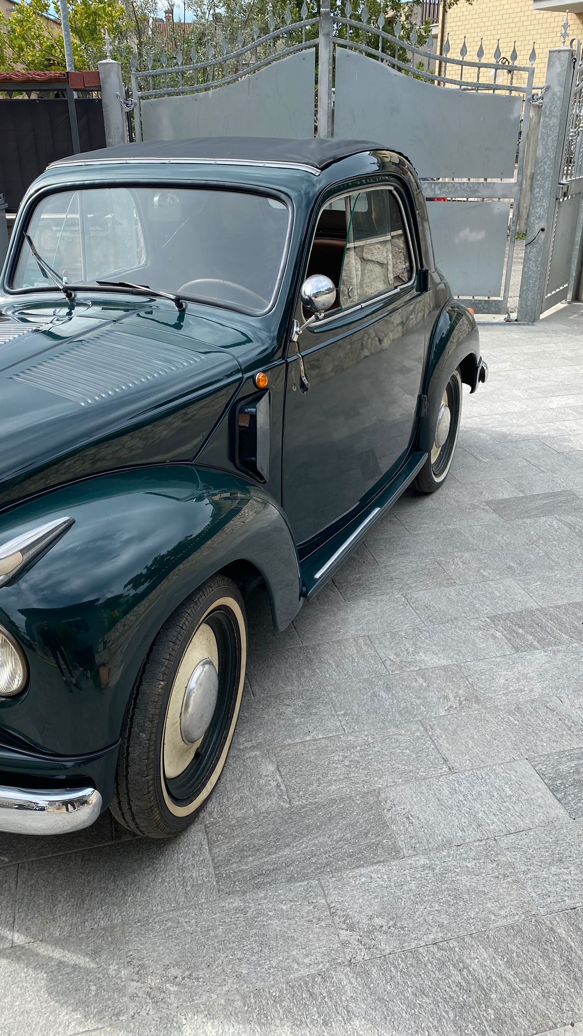 Fiat 500 C topolino del 1954, cilindrata 650, buone condizioni con piccole imperfezioni dovute al tempo, sul cofano dietro un piccolo difetto di vernice. Gomme nuove, costo 550 euro, capote nuova, meccanica revisionata, impianto elettrico revisionato, batteria nuova. In perfette condizioni come visibile nelle foto.
