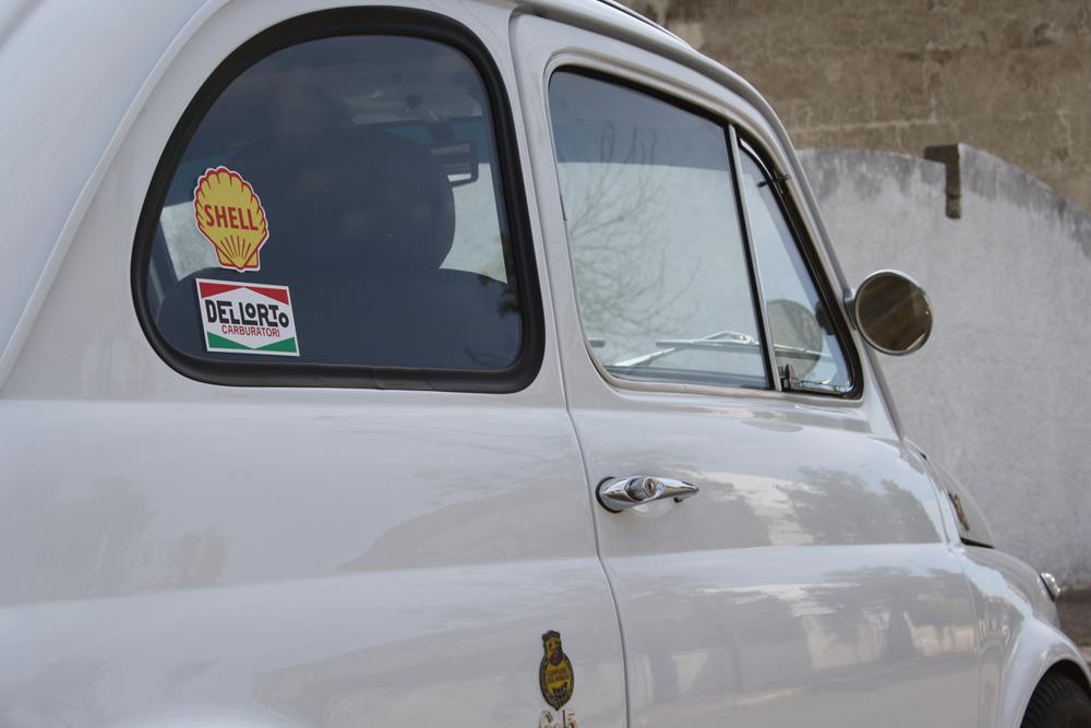 Dalle foto noterete che sono presenti vari adesivi della “D’angelo Motori”, famoso tuner italiano. Tuttavia la vettura non è stata preparata nella loro officina, ma sono stati acquistati solo pezzi di ricambio utili per le modifiche della Fiat 500.