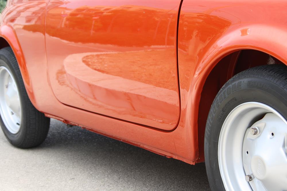 This 1972 Fiat 500 R rosso corallo belonged to a lady who worked in the city hall of the municipality of Brindisi. It can be said that this car has never been out. In fact, the previous owner, to go to work, took it out of her garage and, after making the journey to get to work, parked it inside the garage in the city hall.