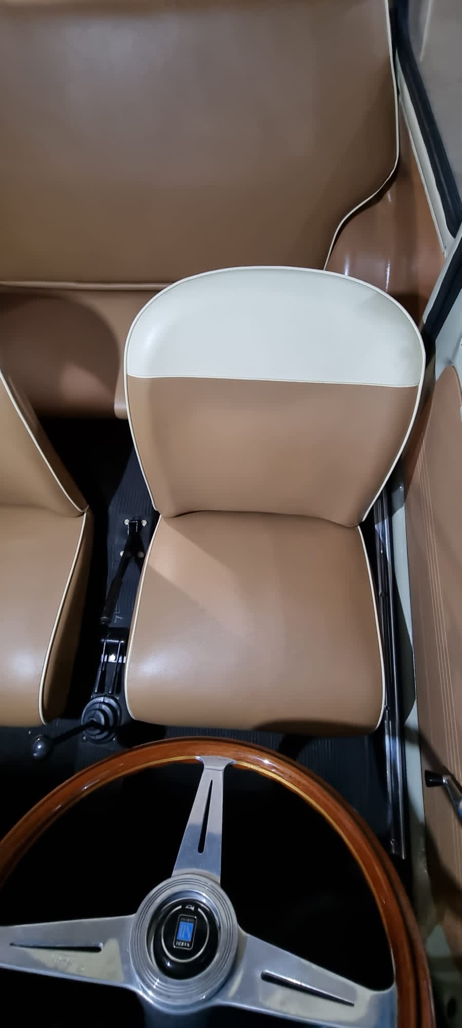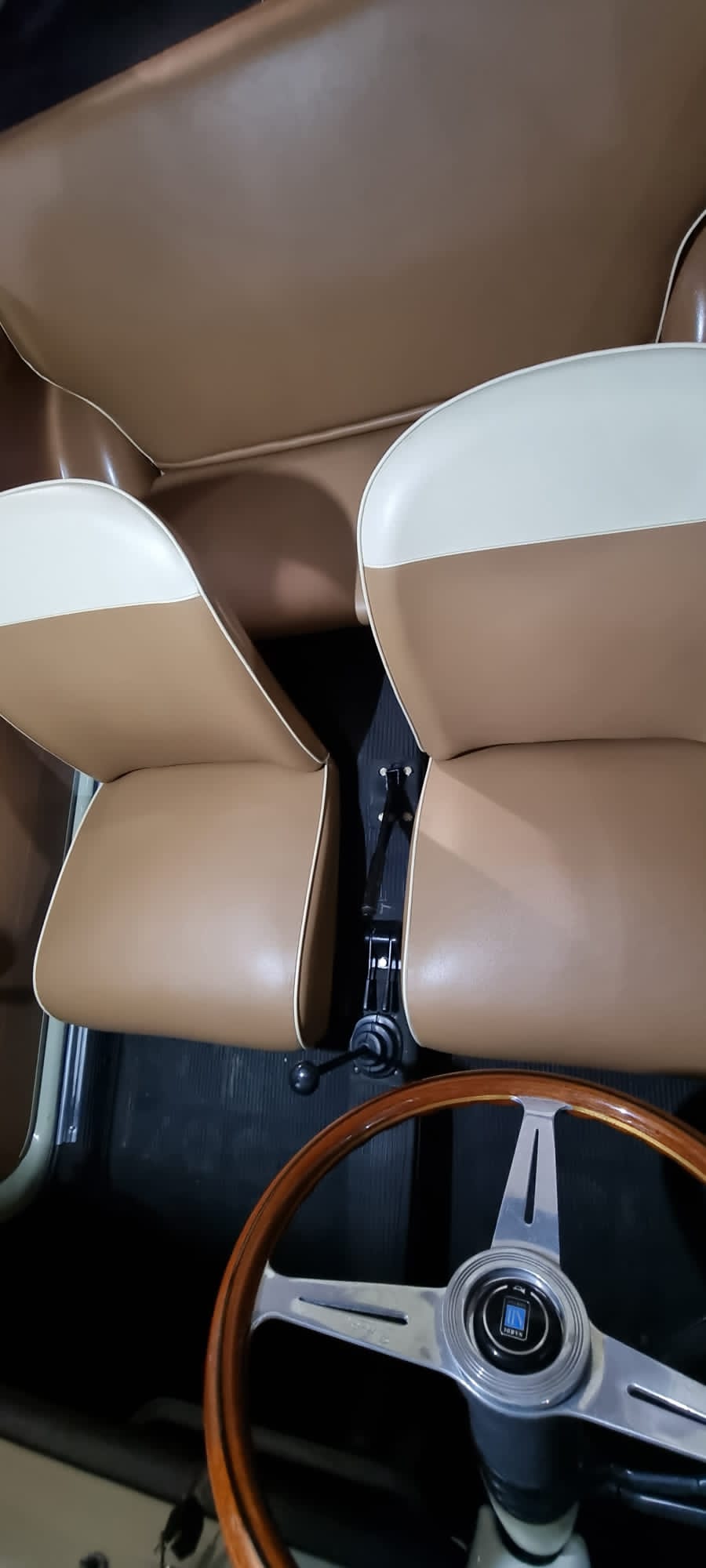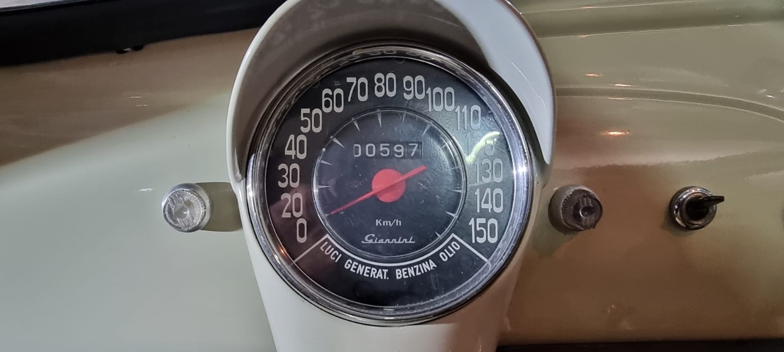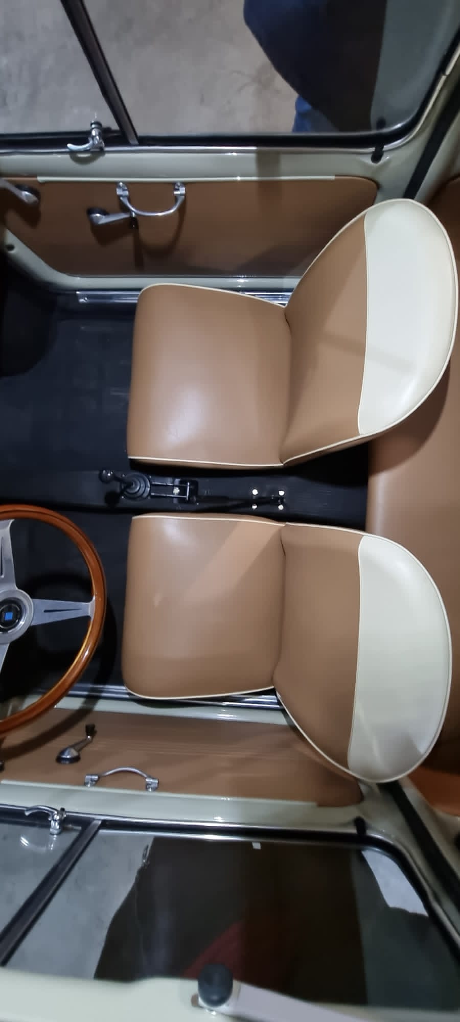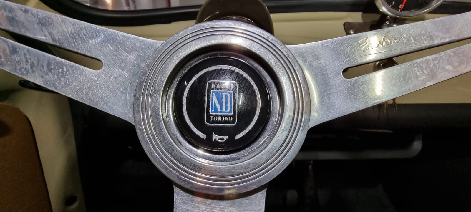 The interior has been redone by sandblasting the frames, repainting them with powder and using colors and features designed to reproduce the original colours, while the bodywork has been brought to sheet metal without sandblasting it, replacing the bottoms of the rear sides and the front quarter.