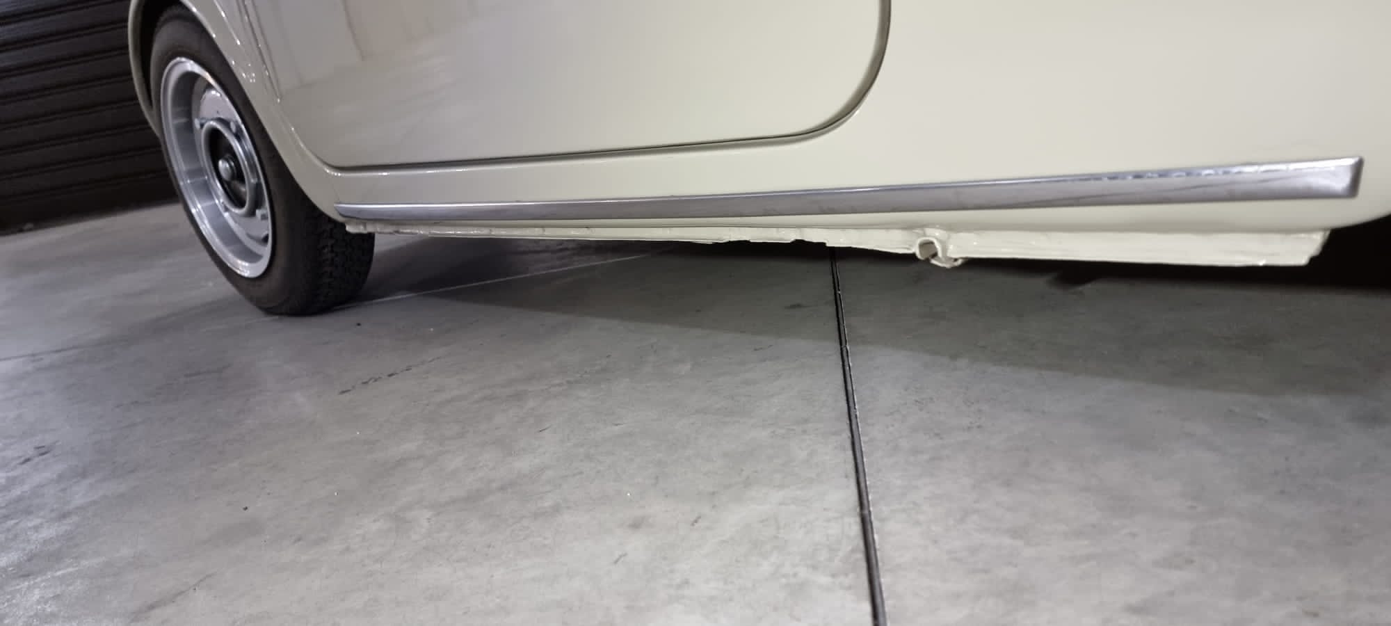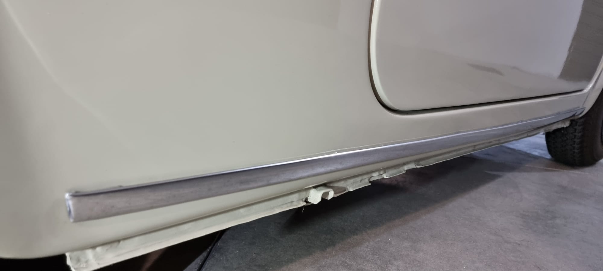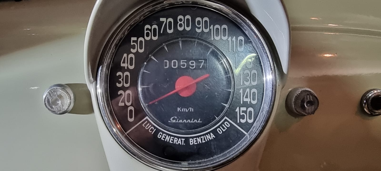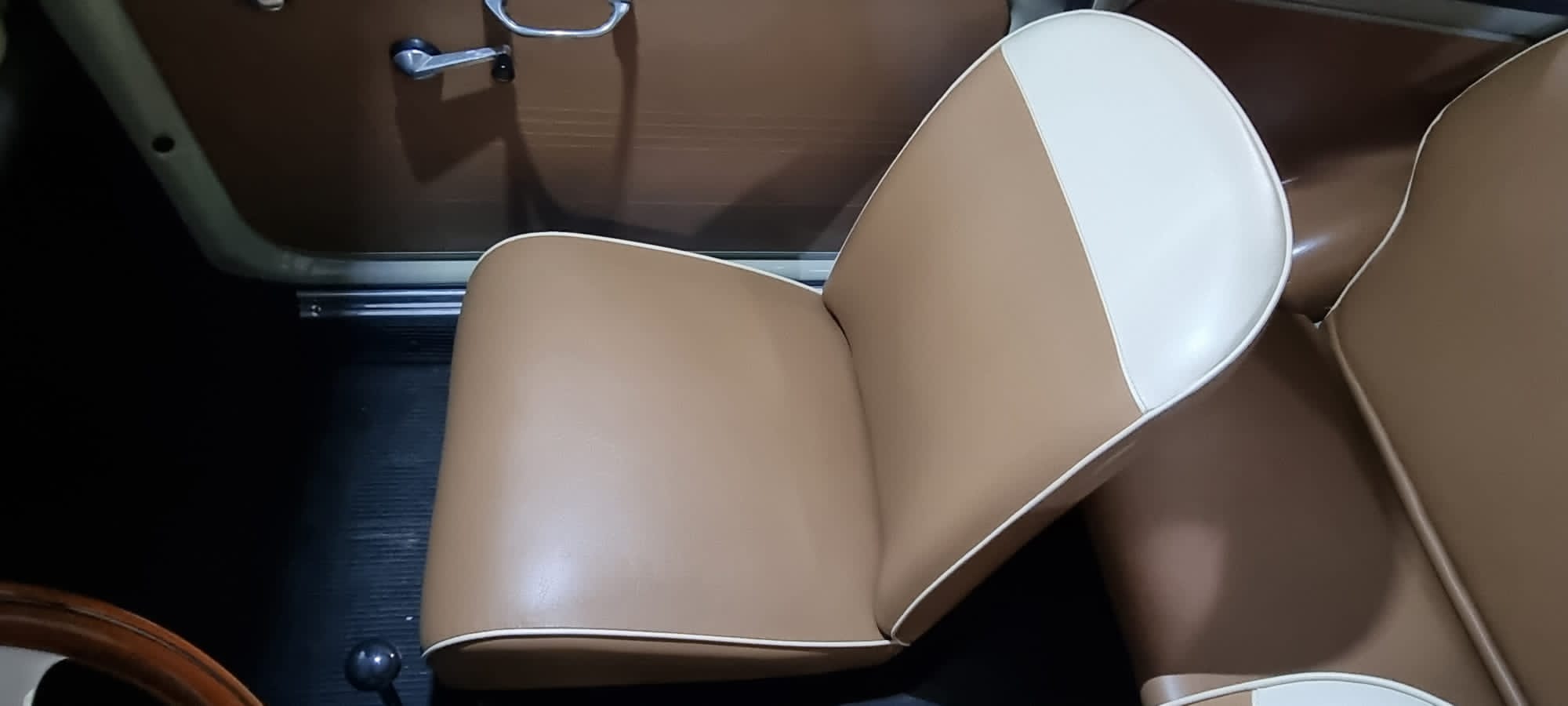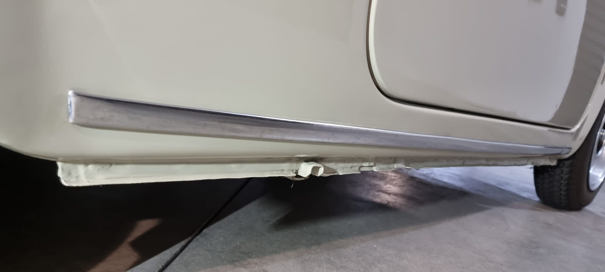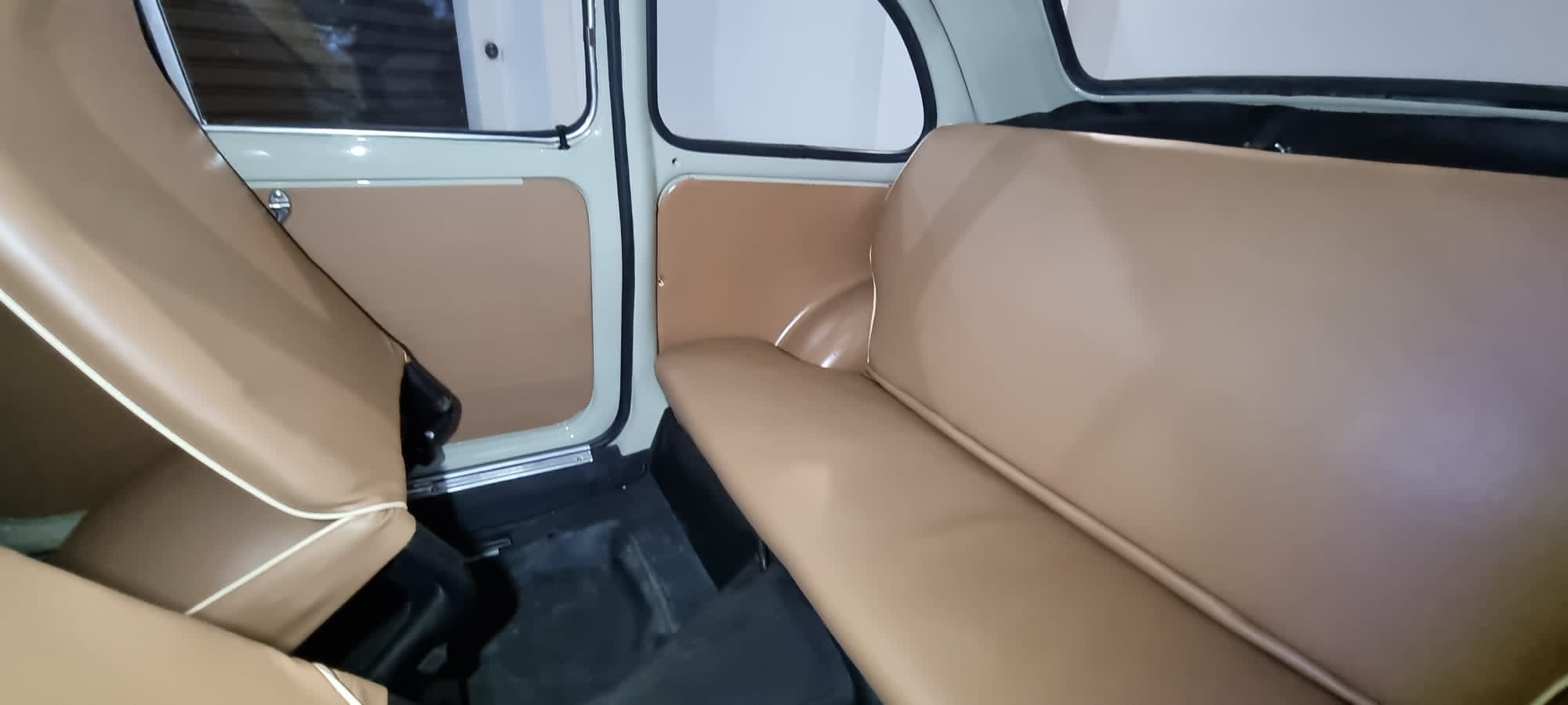 The interior has been redone by sandblasting the frames, repainting them with powder and using colors and features designed to reproduce the original colours, while the bodywork has been brought to sheet metal without sandblasting it, replacing the bottoms of the rear sides and the front quarter.