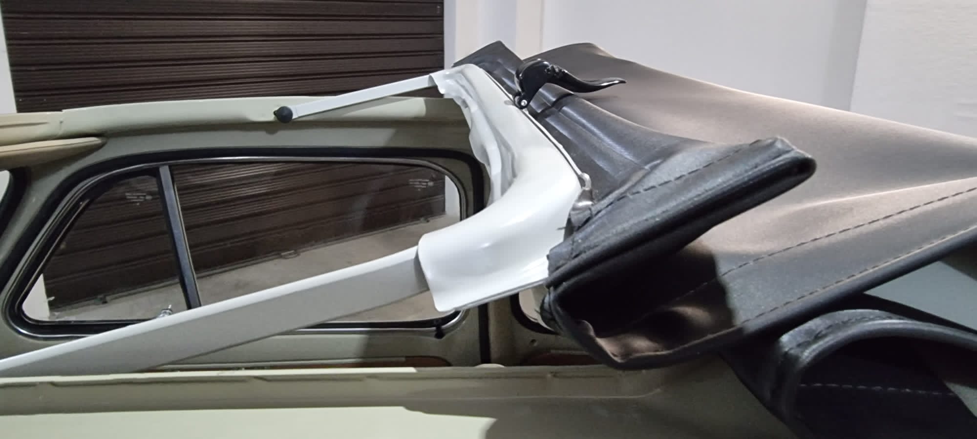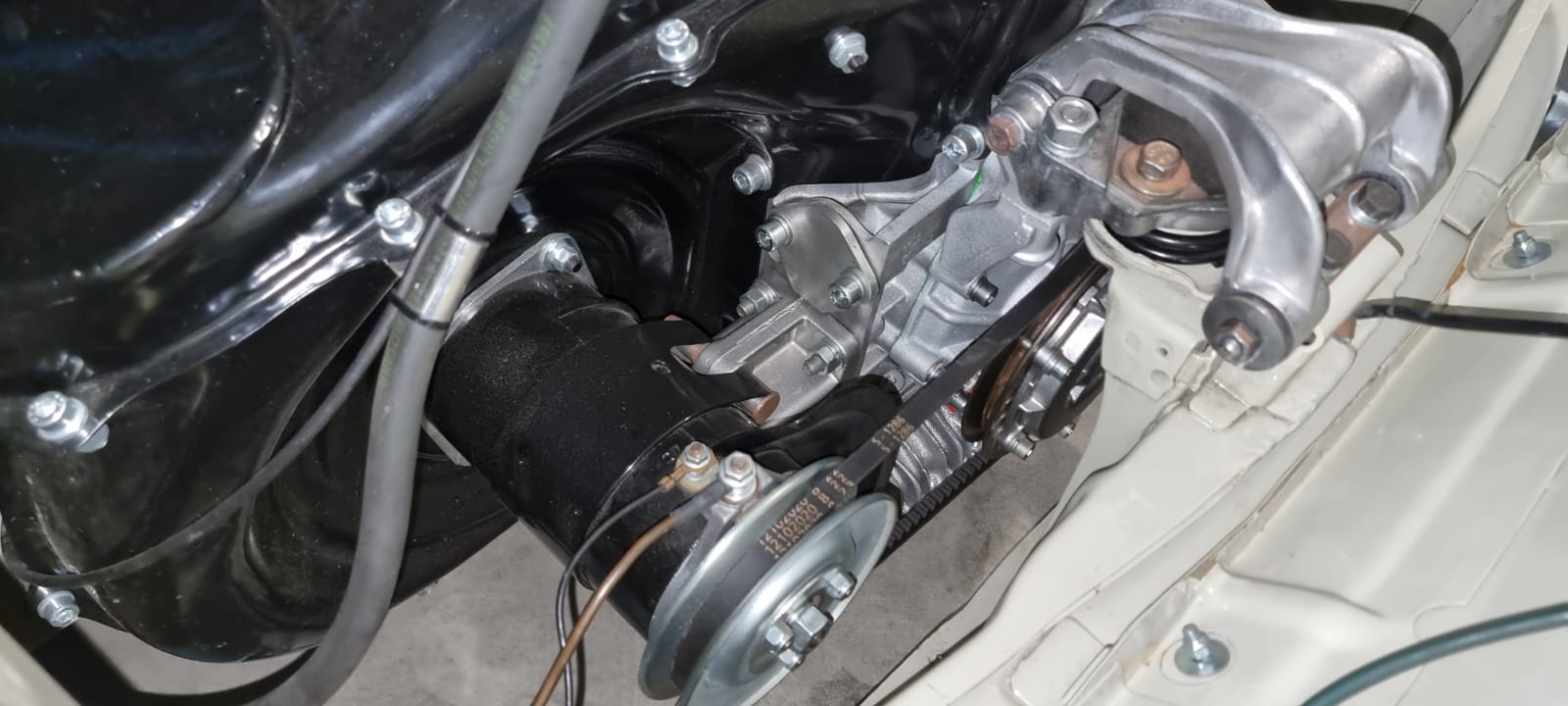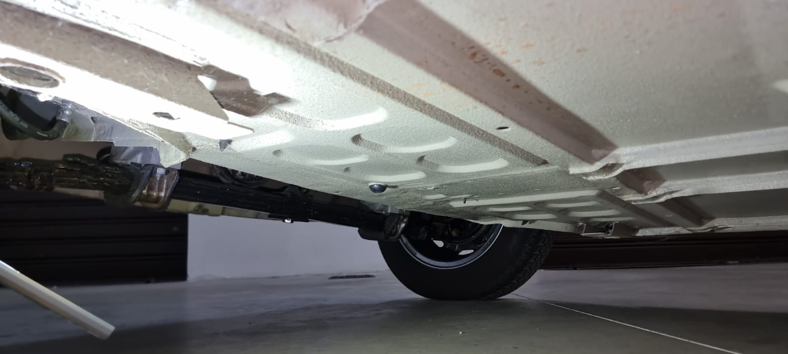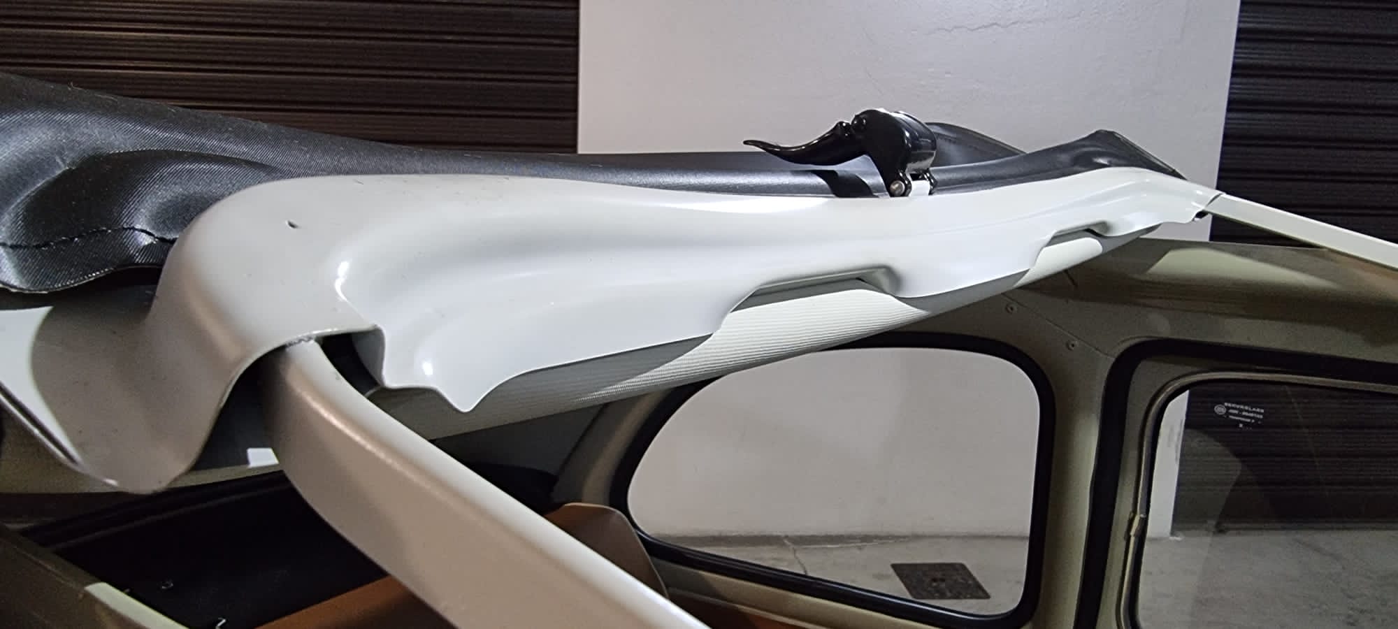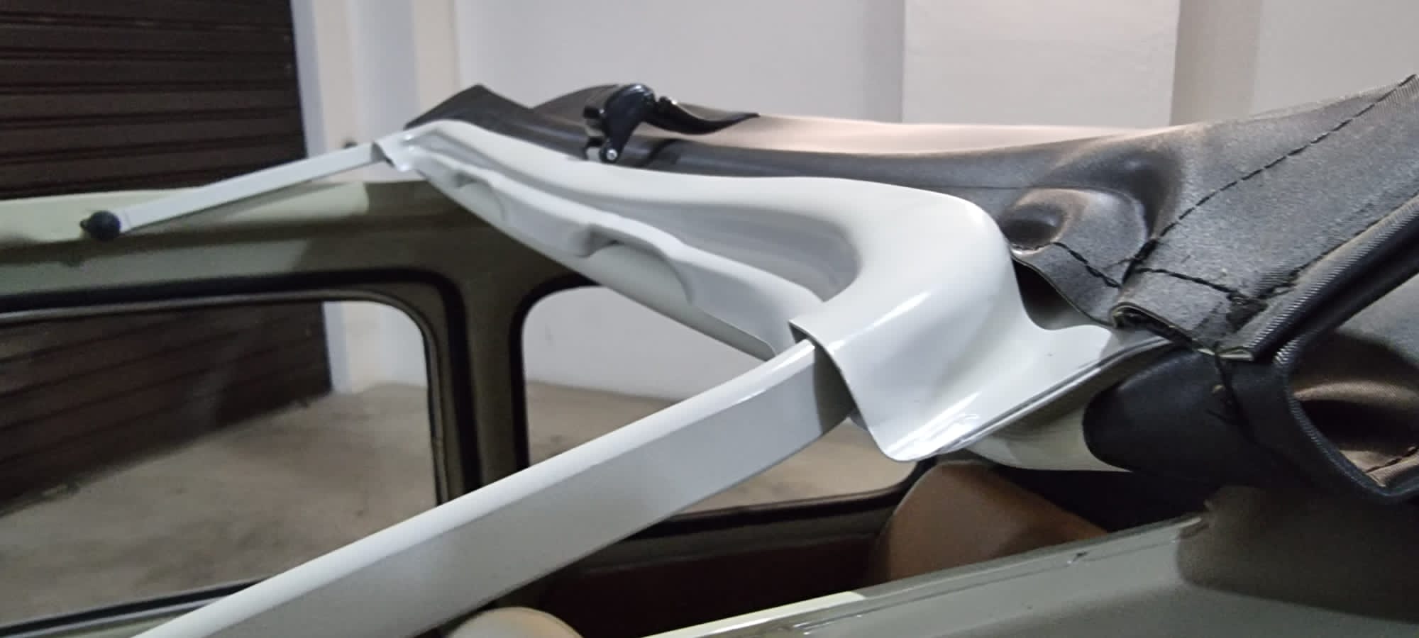 The interior has been redone by sandblasting the frames, repainting them with powder and using colors and features designed to reproduce the original colours, while the bodywork has been brought to sheet metal without sandblasting it, replacing the bottoms of the rear sides and the front quarter.
