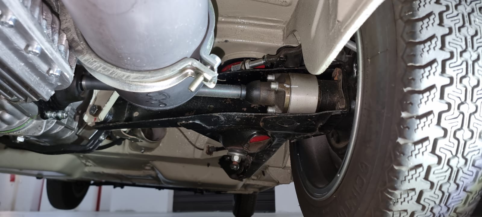 As for the braking system, the car is equipped with sintered racing shoes, mini servo, new drums and pipes. The set-up is lowered according to the characteristics of the 1970s racing Fiat 500s developed by Tecnosuspension, which guarantees a very sporty ride.