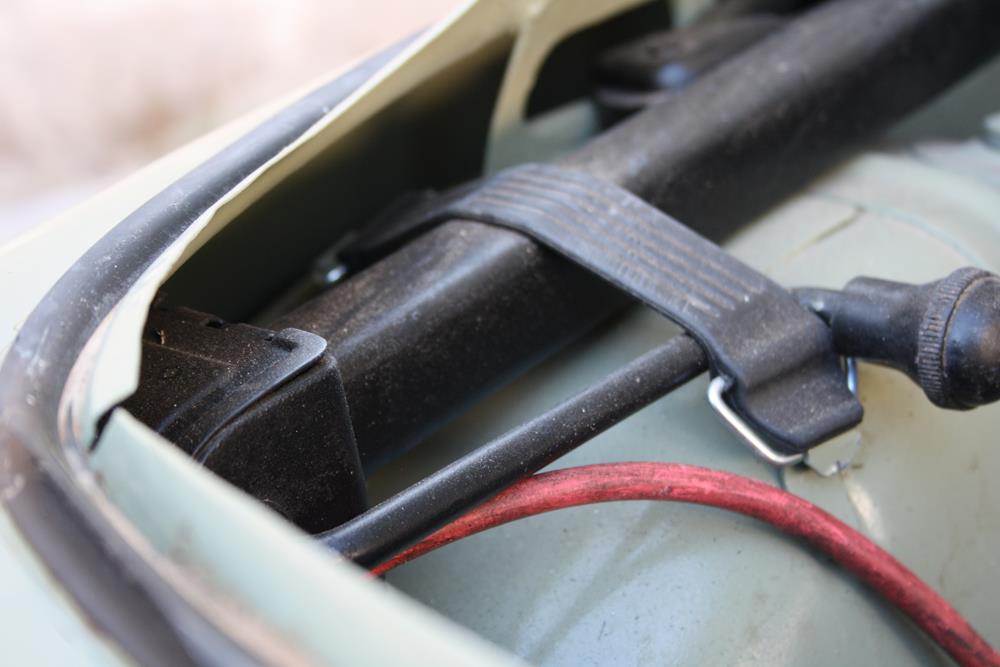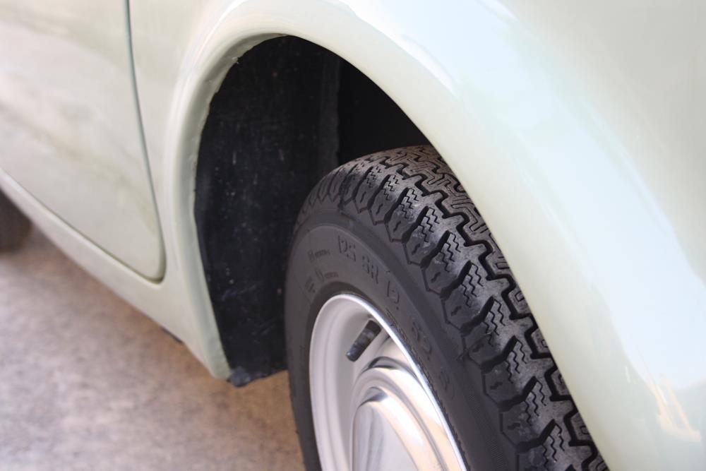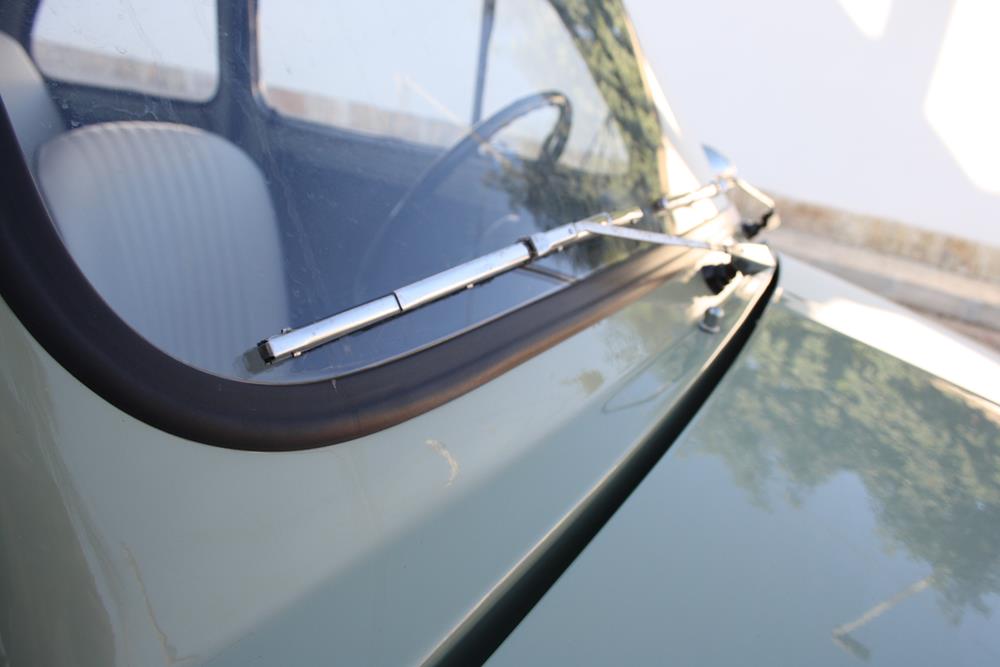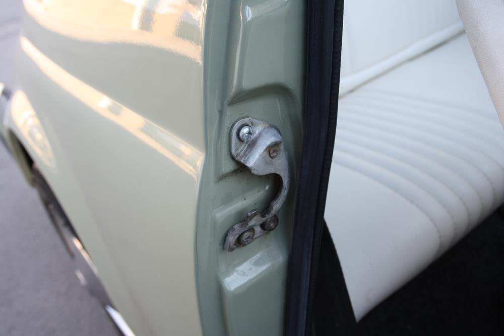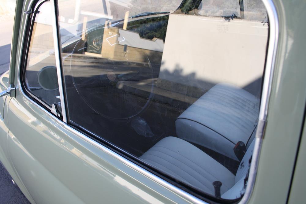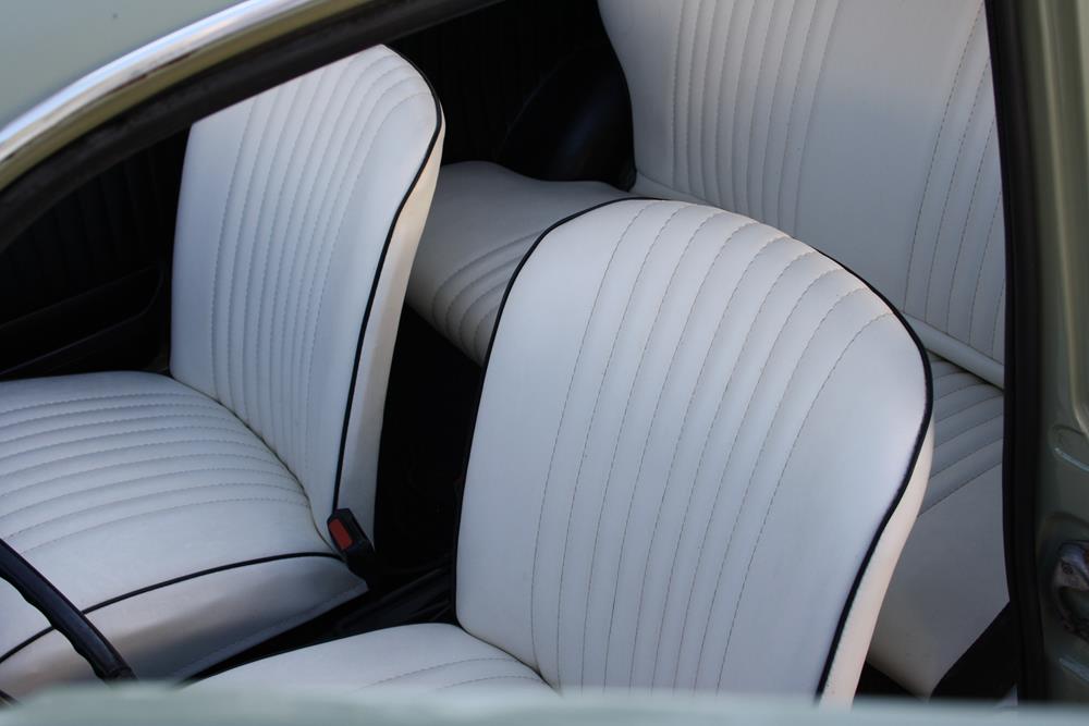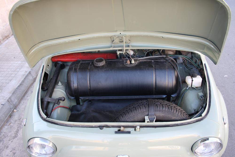Initially the Fiat 500 was in “Giallo Positano” color with a black interior, but during the restoration the color was changed to this “Verde Aquamarina”. The combination of colors between interior and body is also very apt.