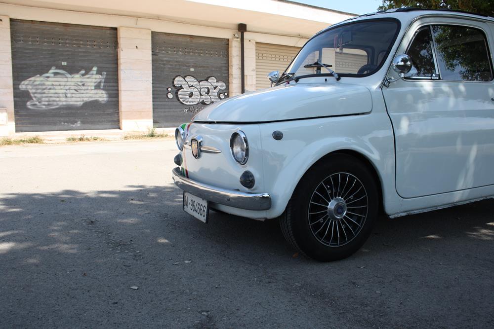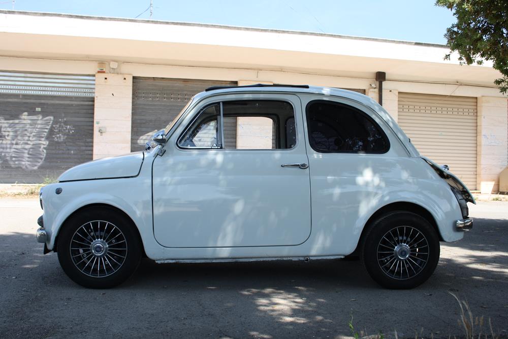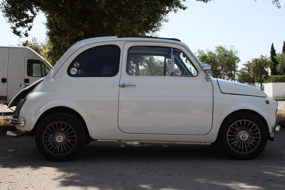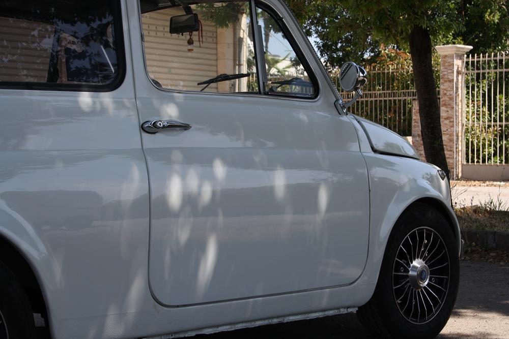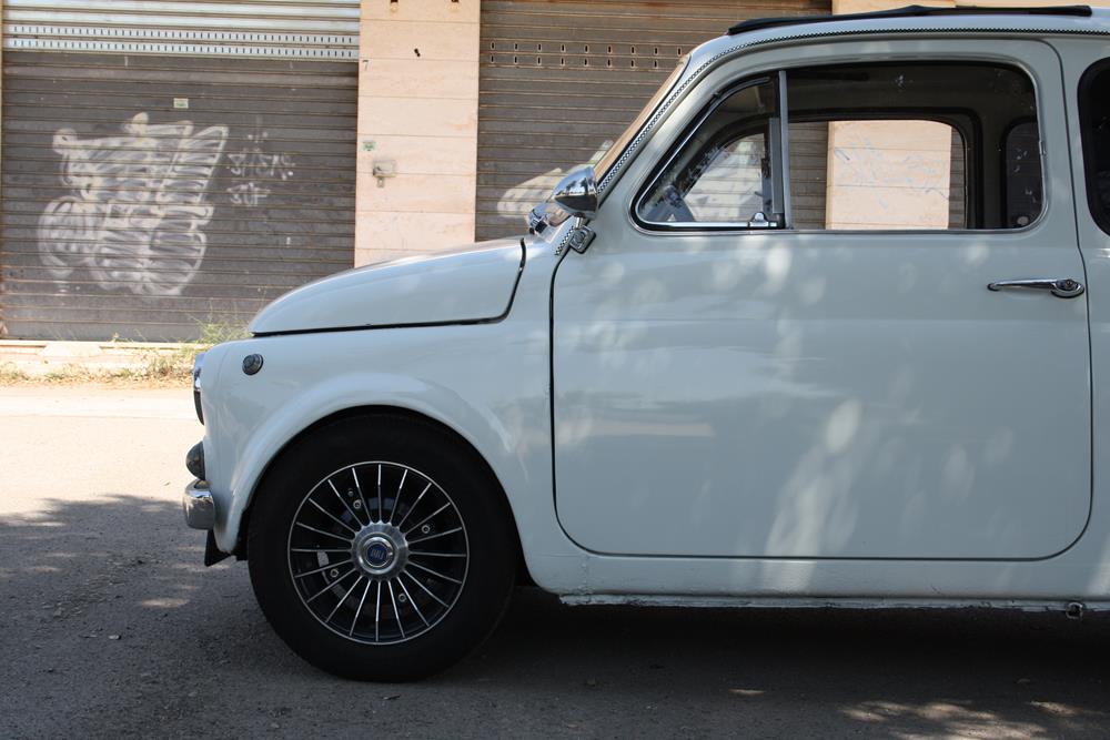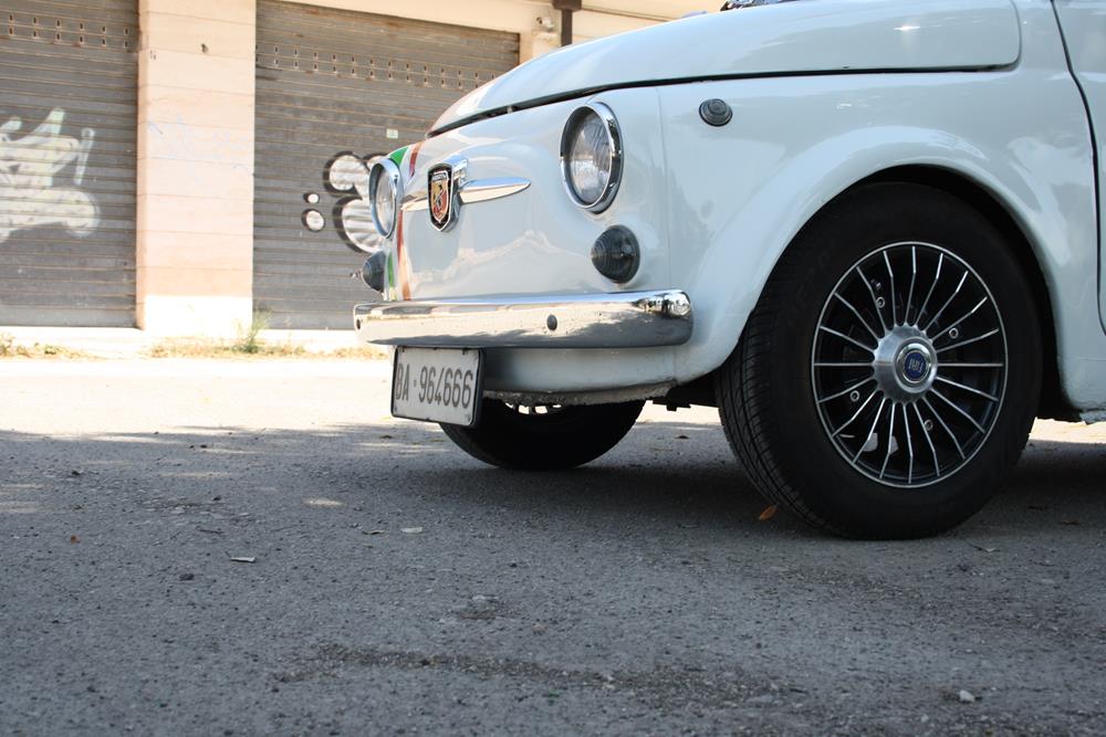 Although largely standard, this Fiat 500 F is finished in an eye-catching white paint, fitted with alloy wheels that make it more aggressive in appearance.