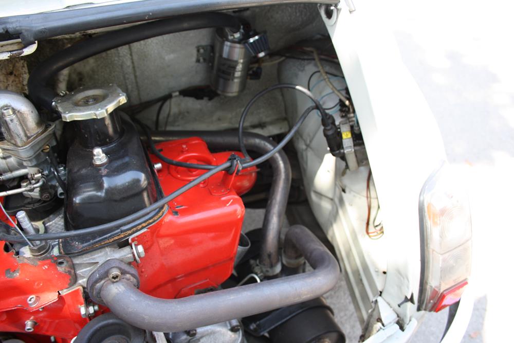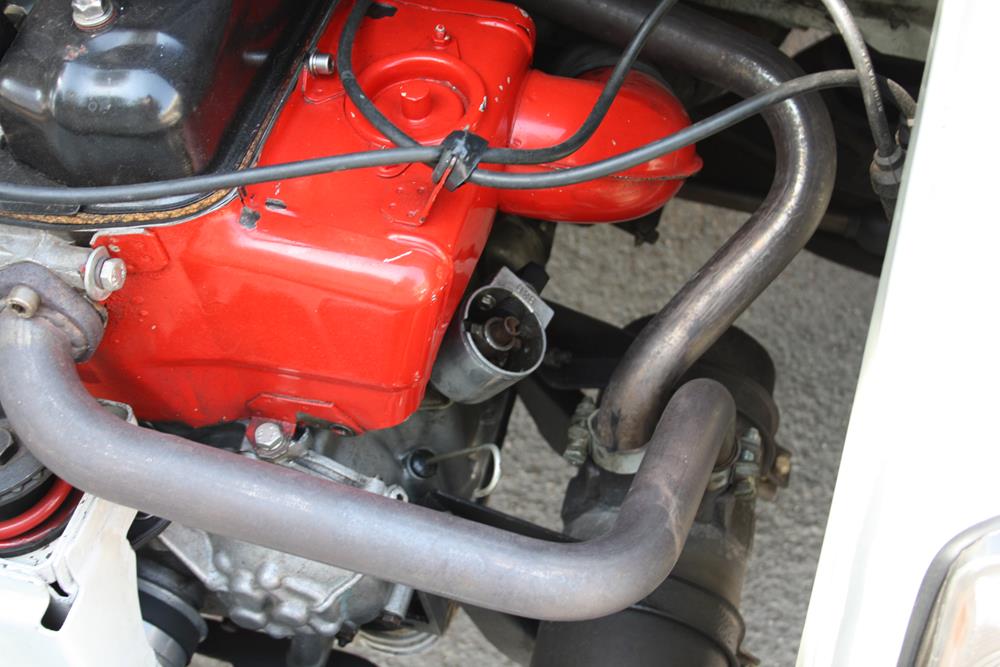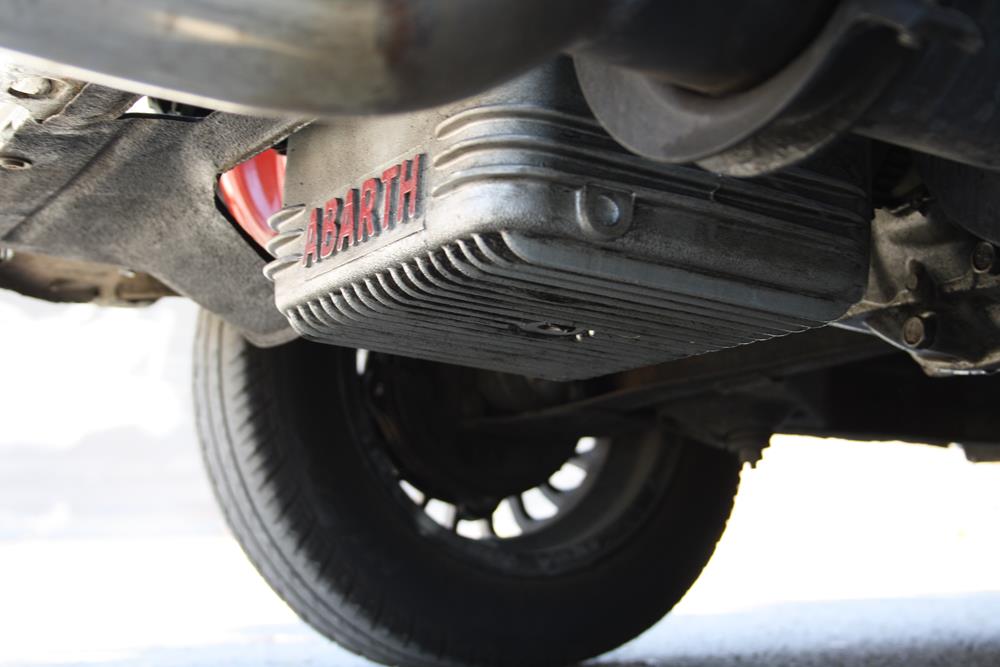 The original oil pan was replaced with an Abarth