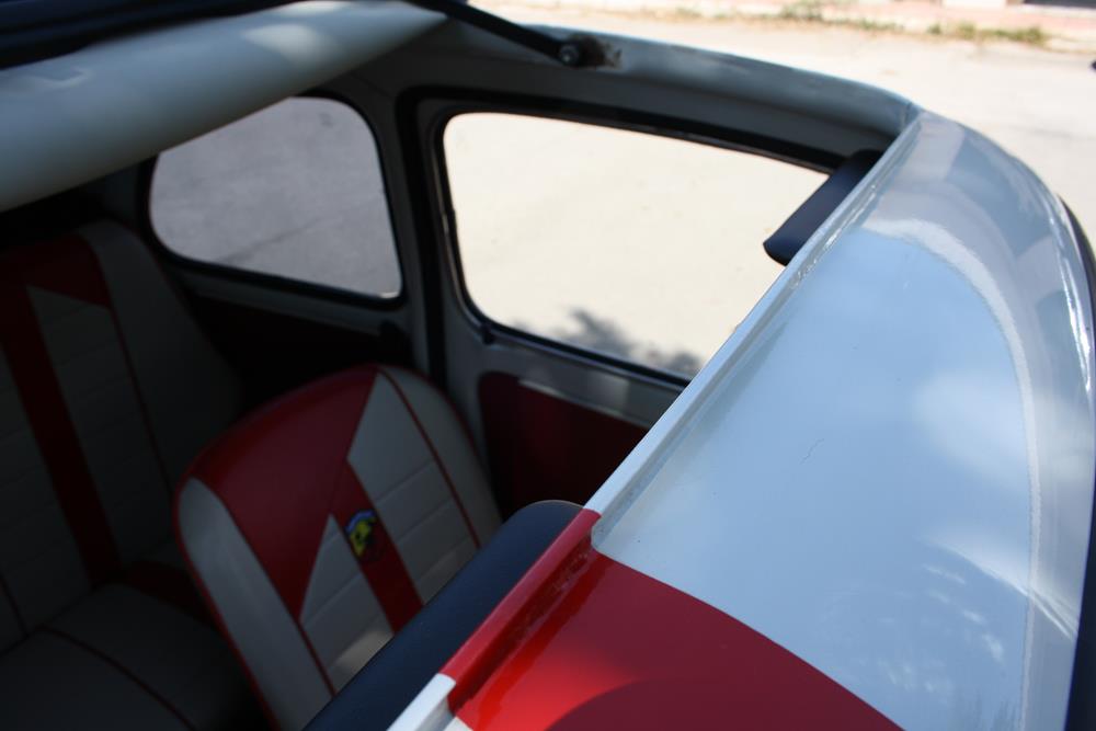 The 1972 Fiat 500 R – Abarth Evocation is in good general condition. The paint is in good condition, but has some flaws near the front wheel arches, and a few small flaws at the bottom of the rear fender. Small dents also on the front fenders, near the door, and other small flaws. Please see the photos with the details of the defects found